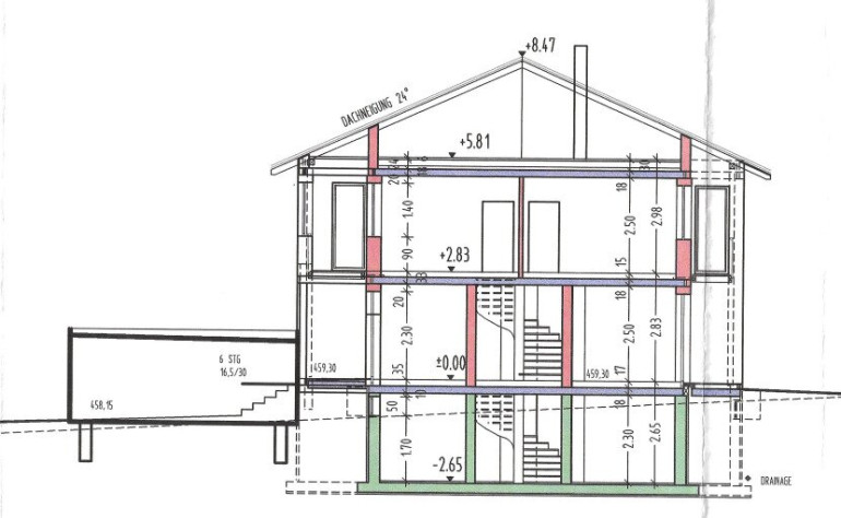 Das Reihenhaus wurde laut Einreichplan beginnend im Jahr 2000 in Massivbauweise errichtet.