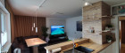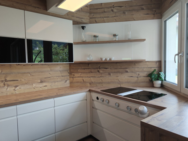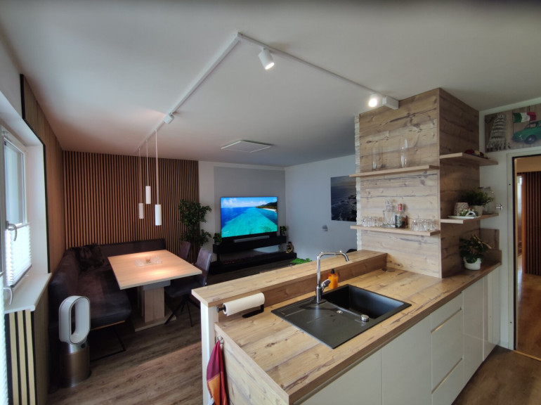 Die gesamte Küche, Wohnzimmerbeleuchtung und Küchengeräte sind per BUS Anlage von der Ferne über Smartphone steuerbar, farbliche Änderung der Beleuchtung, Voicegesteuert etc.