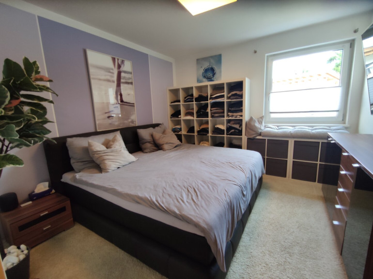 Sie besteht aus einem Vorraum mit Garderobe, einem sehr geräumigen Schlafzimmer, einem Kinderzimmer (Büro), Badezimmer mit Badewanne, separatem WC, eine Abstellraum und einem großzügigen Wohn-Küchen-Essbereich.