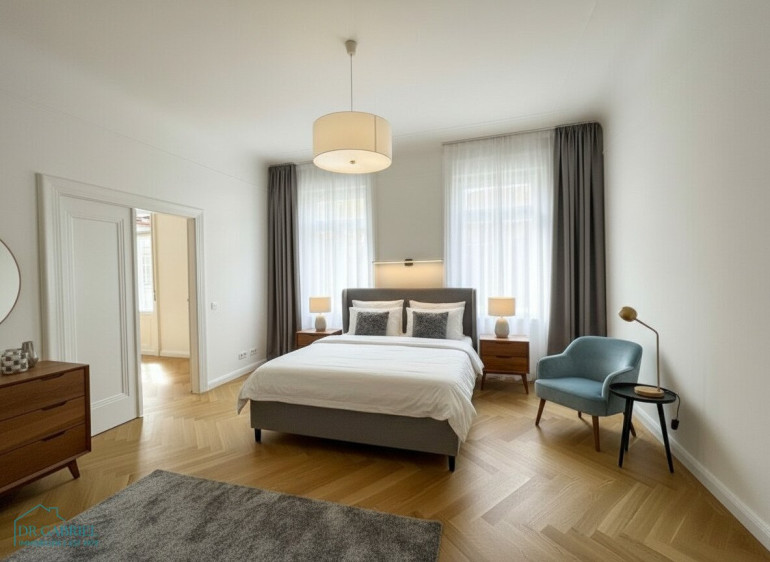 * Vorzimmer, * zwei Salons (Wohnen, Speisezimmer), * drei Schlafzimmer plus ein Gästezimmer/ Homeoffice, * separate Küche, * zwei Bäder, * Gäste-WC, Abstellraum
