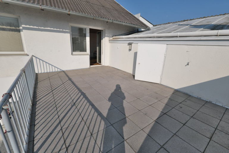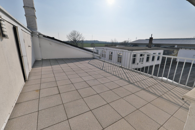 Die Wohnnutzfläche beträgt ca. 145 m² + ca. 40 m² Dachterrasse + 1 grösserer Abstellraum im Dach der von der Terrasse aus zugänglich ist.