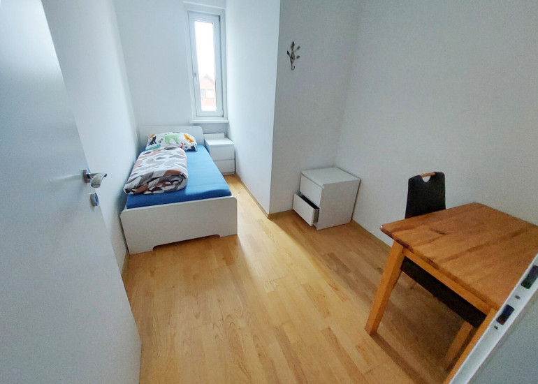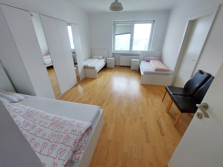 Neubauwohnung: 5 Zimmer mit mindestens 11 Schlafplätzen. Diese Wohnung wird ganz normal vermietet, kann aber auch für WG oder Arbeiterquartier oder ähnliches vermietet werden (Untervermietrecht).
