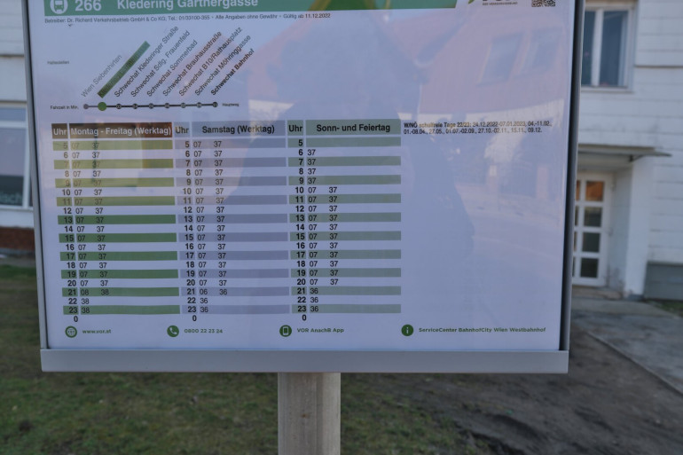 Sie befindet sich 1 km neben Wien in Schwechat, in der Klederinger Straße 31. Direkt vor dem Haus befindet sich die Bushaltestelle Linie 266 (Fahrplan siehe Fotos).
