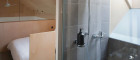 Heizofen, Wohnküche / offene Küche, Dusche, Bad mit Fenster
