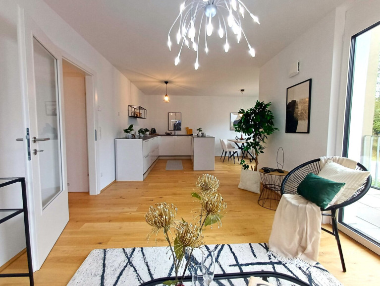 Die Erstbezugswohnung befindet sich in einem gerade erst fertiggestellten Mehrparteienhaus mit nur lediglich insgesamt fünf Wohneinheiten und kann direkt vom Bauträger erworben werden.