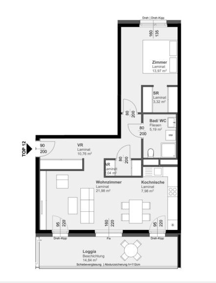 EINZIEHEN & SPAREN - 2 MONATE GESCHENKT! Bei Vertragsabschluss bis 01.06.2026Diese moderne und großzügig geschnittene 2-Zimmer-Wohnung mit ca.80,08 m² Wohnfläche befindet sich im 2.Obergeschoss mit Lift und überzeugt durch ihre durchdachte Raumaufteilung, die große Loggia sowie ein angenehmes Wohnambiete in gut angebunderner Lage.
