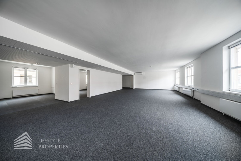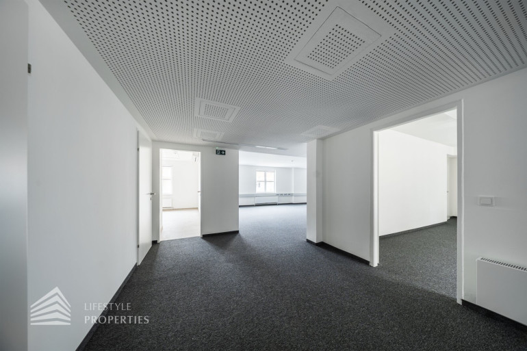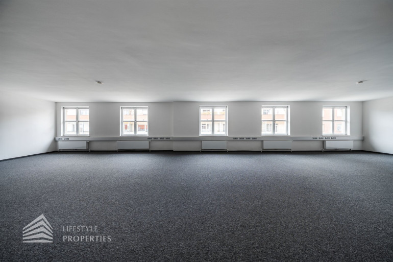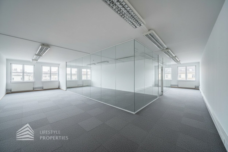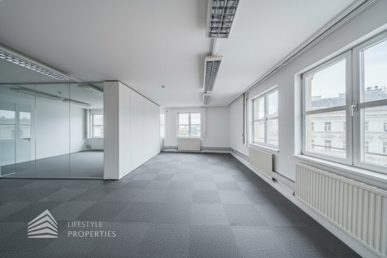 Das Büro verfügt über eine Nutzfläche von ca. 214 m² und befindet sich im 5. OG eines im Jahre 1897 erbauten Altbauhauses, welches sich in einem sanierten Zustand befindet.