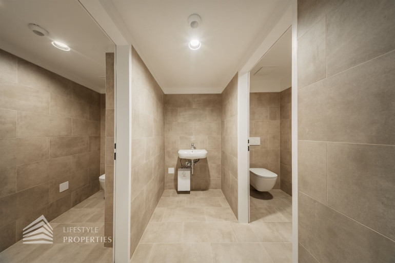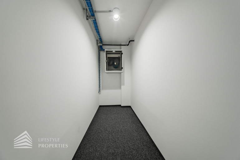 Beim Eingang befindet sich der ca. 15 m² große Empfang. Durch einen ca. 15 m² langen Gang gelangt man zu den einzelnen Büroräumen. Am Ende des Ganges befindet sich ein Sozialraum mit einer Teeküche, die Toiletten für die Damen und Herren und ein Serverraum. Beim Empfang befindet sich zusätzlich ein Abstellraum. Die Fläche des Heizraumes wird auf vier Einheiten aufgeteilt.