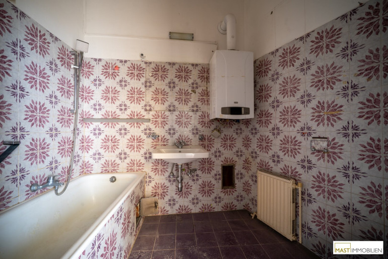 Bei der angebotenen Wohnung handelt es sich um eine renovierungsbedürftige 2-Zimmer Wohnung im 1. Obergeschoss mit insgesamt 60 m2 Wohnfläche. Die Wohnung verfügt aktuell über ein Wohnzimmer, eine separate Küche und ein Schlafzimmer. Mit etwas handwerklichem Geschick, kann man diese Wohnung zu einer kompakten 3-Zimmer-Wohnung umbauen.