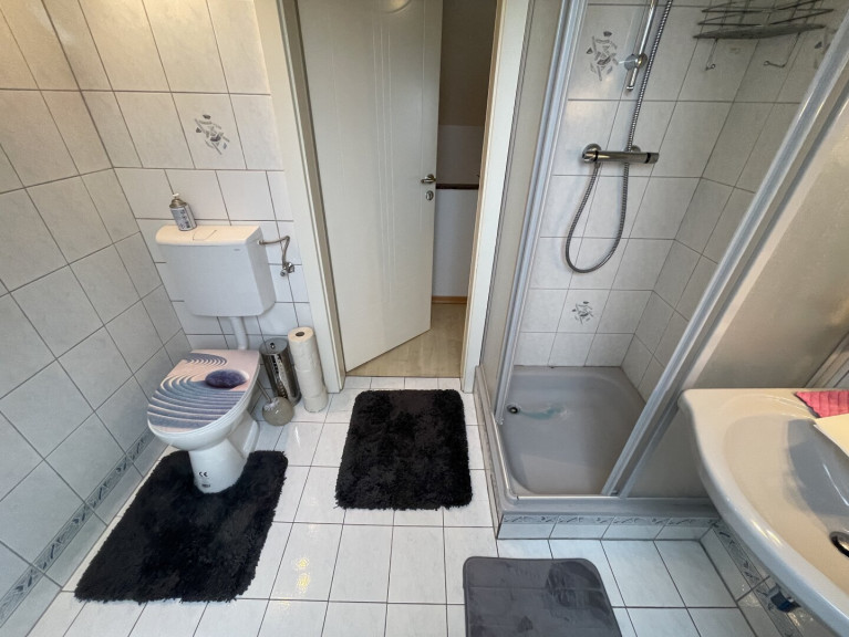 im Erdgeschoss finden Sie einen Vorraum, ein Wohnzimmer, eine Küche, ein Esszimmer, ein Schlafzimmer, ein Badezimmer mit WC und einen Abstellraum. Im Obergeschoss gibt es zwei Zimmer, ein Badezimmer mit WC und einen Abstellraum.