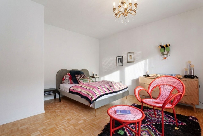 Zwei weitere Zimmer bieten flexible Nutzungsmöglichkeiten, ob als Schlafzimmer, Arbeitszimmer oder Gästezimmer. Die Küche ist funktional ausgestattet und fügt sich harmonisch in das stilvolle Gesamtbild ein. Ein Badezimmer mit Badewanne sowie ein separates WC sorgen für zusätzlichen Komfort.