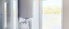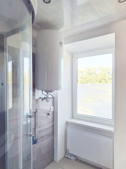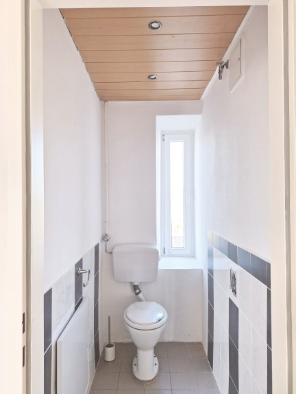 Sanitäreinrichtung: Stand-WC mit Spülkasten ober Putz, Waschbecken, Dusche, Warmwasserboiler