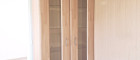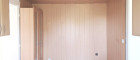 Decken: gemalt tlw. abgehängt mit Holzvertäfelung