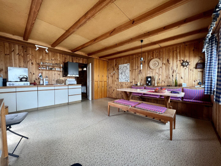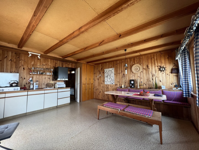 Die Hütte ist einfach ausgestattet und weist leichten Renovierungsbedarf auf. Die Piloten (Steher, auf der die Hütte stehen) wurden immer wieder erneuert.