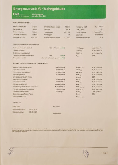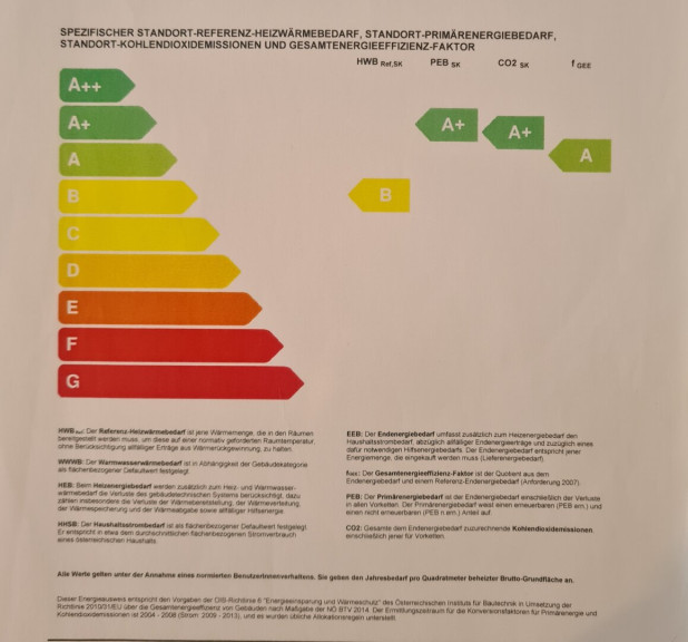 | Heizwärmebedarf: | B 33,00 kWh/m²a |