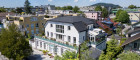 Auf der Südseite des Grundstücks befindet sich die Einfahrt von der Karl-Emminger-Straße, Besucherparkplätze sowie zwei großzügige Garagen mit funkgesteuerten Toren. Nach den anderen drei Seiten ist das Haus
