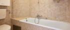 Das Badezimmer ist mit einem Waschbecken, einem WC und einer Badewanne ausgestattet.