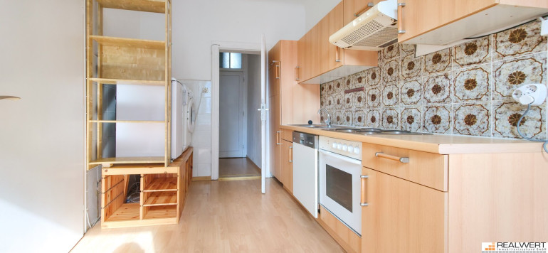 Die Küche ist direkt vom Vorraum aus begehbar, funktional eingerichtet und verfügt über einen Herd mit 4-Platten Kochfeld und Backrohr, einen Dunstabzug sowie einen Geschirrspüler. Die Wasseraufbereitung in der gesamten Wohnung wird durch eine Gastherme hergestellt, welche sich im Badezimmer befindet.