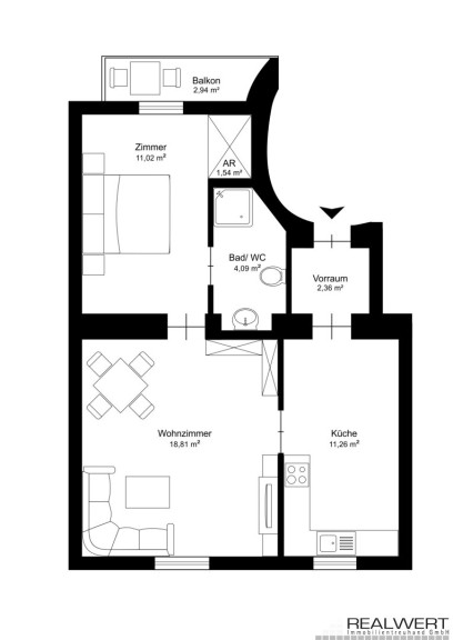 + gut eingeteilte 2-Zimmer Wohnung