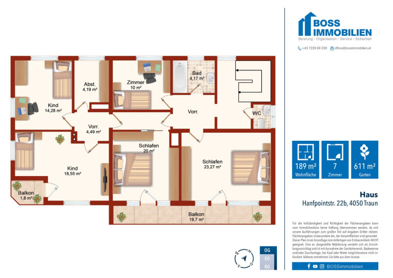 Auf zwei Etagen eröffnet sich Ihnen eine Wohnfläche von 189 m², die mit sieben geräumigen Wohn- und Schlafzimmern eine Fülle an Möglichkeiten bietet. Ob Sie ein gemütliches Kinderzimmer, ein lichtdurchflutetes Büro oder ein Gästezimmer für Ihre Liebsten einrichten möchten – hier finden all Ihre Vorstellungen Raum. Dank der Unterkellerung steht Ihnen zudem reichlich Stauraum zur Verfügung, während die Haustechnik dezent im Hintergrund bleibt.