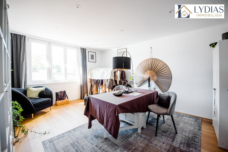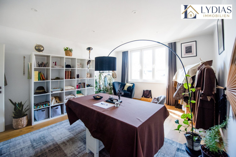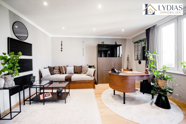 Zur Information: Die Abbildung des Wohnzimmers wurde virtuell gestaltet und dient der Veranschaulichung. Die Originalfotos finden Sie ebenfalls im Inserat.