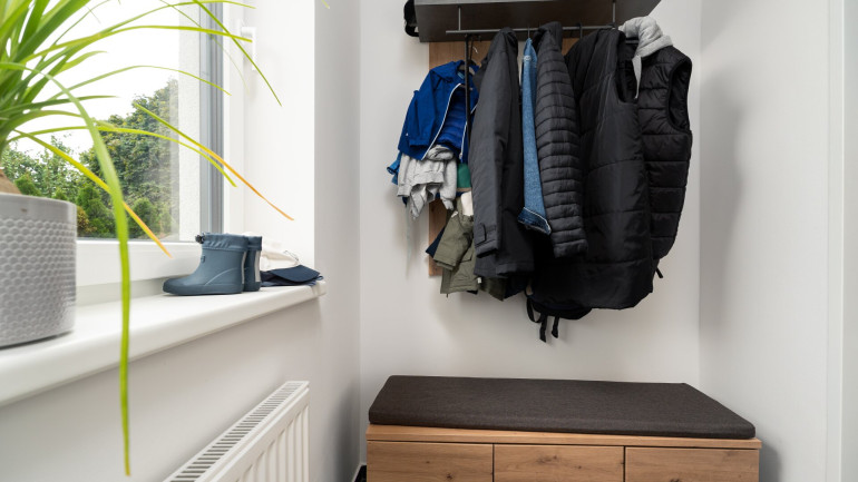 Erdgeschoss: Eingang mit Garderobe, Vorraum, Küche, Wohn-Essbereich, WC