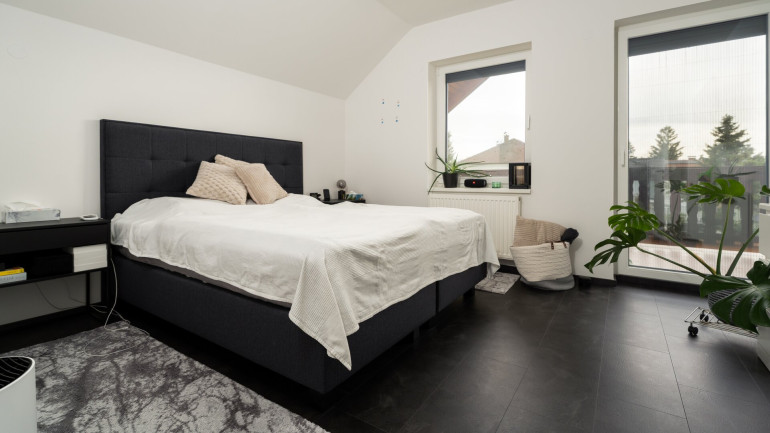Obergeschoss: Vorraum, 1 großes Schlafzimmer mit Balkon, 1 kleineres Schlafzimmer mit Schrankraum, 1 weiteres großes Zimmer, Badezimmer mit Dusche und Wanne