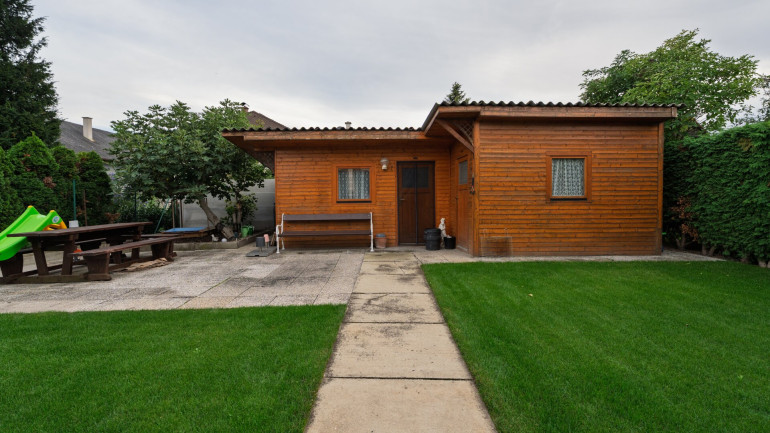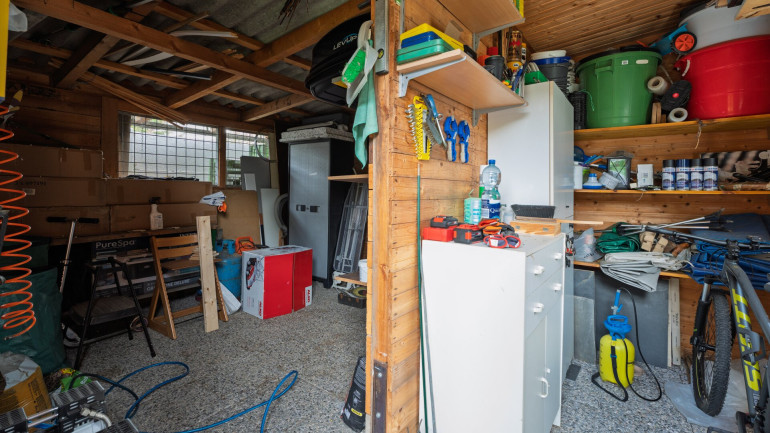Der liebevoll gestaltete Garten ist sowohl über die Terrasse als auch seitlich um das Haus begehbar. Ein gepflasterter Weg führt zur Gartenhütte, die über einen Internetanschluss verfügt – ideal für Homeoffice oder private Hobbys.