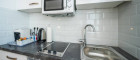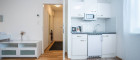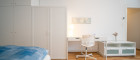 This stylishly renovated studio apartment offers 40 m² of comfortable living space on the 3rd floor of a residential building with elevator, facing a quiet courtyard. It includes a spacious sleeping area with a double bed, a cozy living corner with sofa, a fully equipped kitchen, and a large bathroom. High-quality furnishings and modern appliances such as a washing machine, refrigerator, microwave, and WiFi ensure maximum convenience.
