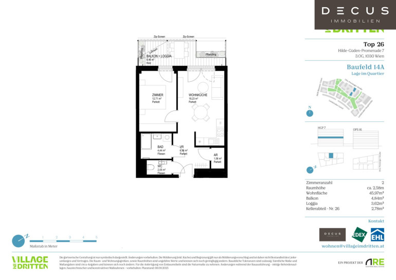 Nähere Informationen zu den Wohnungen auch online unter: https://villageimdritten.at/wohnungsfinder/