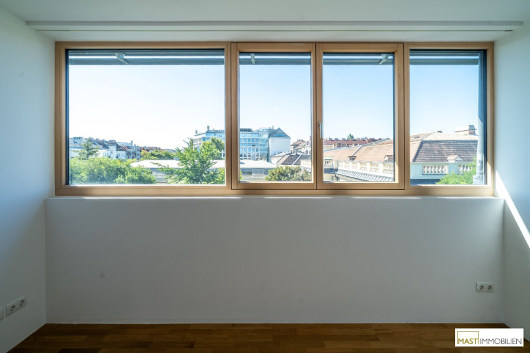Zum Verkauf steht eine stilvolle 2-Zimmer-Wohnung im 1. Dachgeschoss eines im Jahr 2021 errichteten Dachausbaus. Der moderne Lift mit Glasfront bringt Sie bequem bis vor die Wohnungstür und ermöglicht Ihnen zusätzlich einen herrlichen Blick in den ruhigen Innenhof.