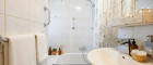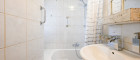 ein Badezimmer mit Wanne, WC und Waschmaschinenanschluss