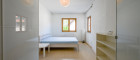 Schlafzimmer: Doppelbett mit Kleiderschrank und eine kleine Leseecke am Fenster.