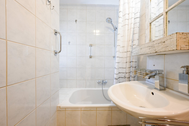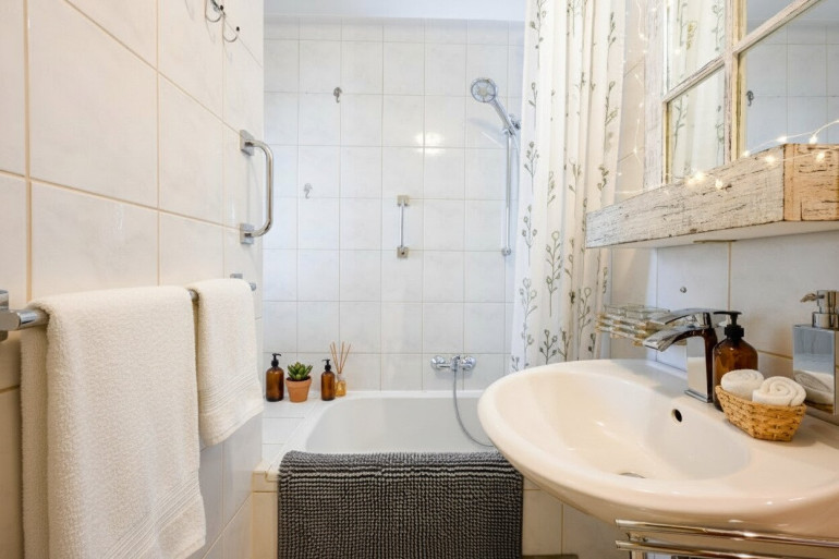 Bad: mit schlichten Badmöbeln in Weiß oder Holzoptik lässt sich der Raum optisch vergrößern.