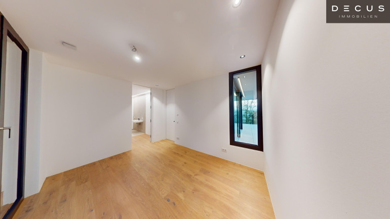Die Wohnung bietet großzügige Raumhöhen von 2,75 m und lichtdurchflutete Räume dank hochwertiger Schüco-Glaselementen mit 3-fach-Verglasung mit erhöhtem Schallschutz. Die fließenden Übergänge zwischen den Bereichen schaffen ein modernes, offenes Wohngefühl.