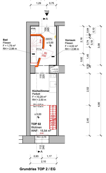 Die Wohnung wurde 2019 umgebaut und saniert. Sie besteht aus einem Vorraum (mit Waschmaschinenanschluss), der Zugang zum Badezimmer mit Dusche, WC und Handwaschbecken bietet sowie einem weiteren Raum. Dieser verfügt über eine kleine Küchenzeile, Platz für den Wohnbereich und über eine Treppe die zur Galerie einen Stock höher führt. Hier ist (durch eine Raumhöhe von fast 4,5 m) der Schlafbereich untergebracht.