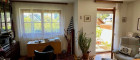 EG: Wohnzimmer mit Südterrasse und Garten, Holzofen, Küche, Vorraum, WC mit Fenster, ca. 50,71m²