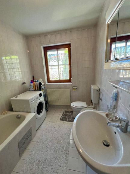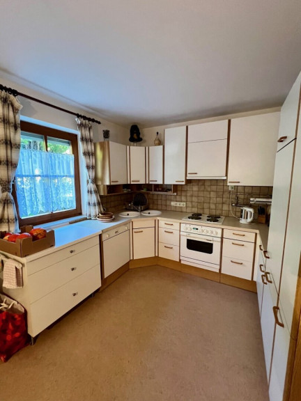 Fliesen, Parkett, Öl, Heizofen, Zentralheizung, Einbauküche, Bad mit Fenster, Badewanne, Garage, Parkplatz