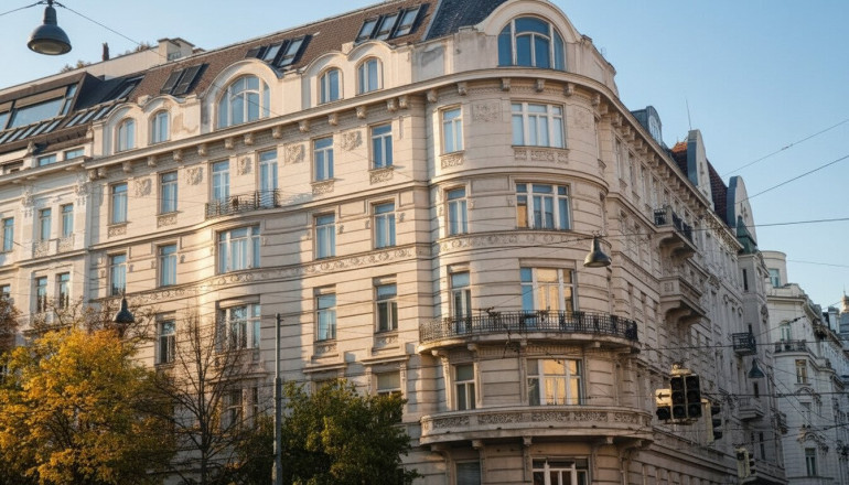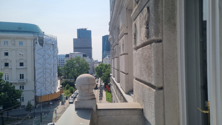 Die Büroflächen befinden sich im 4. (= 3. OG) respektive 5. (= 4. OG) Liftstock eines wunderschönen Ringstraßengebäudes, das 1904 errichtet wurde und sich vis-a-vis vom Wirtschaftsministerium und dem Mak, dem Museum für Angewandte Kunst, befindet.