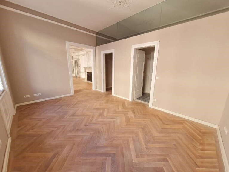 Besonders hervorzuheben ist definitiv der große Salon mit 60m², dem ein Balkon mit Blick über den Ring auf Wien Mitte und das Handelsgericht vorgelagert ist.