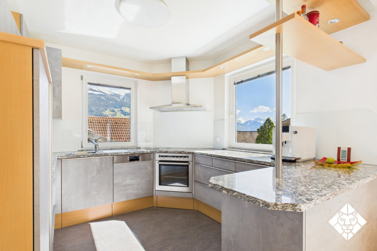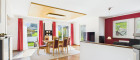 Die moderne Küche bietet viel Platz für gemeinsame Kochmomente.