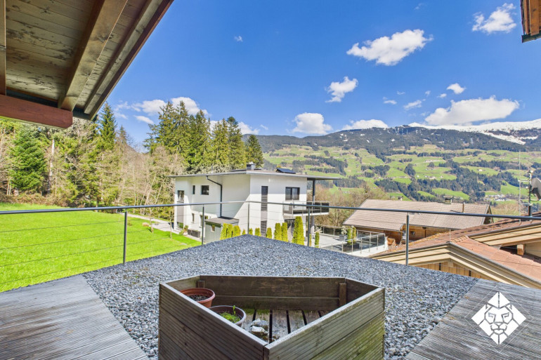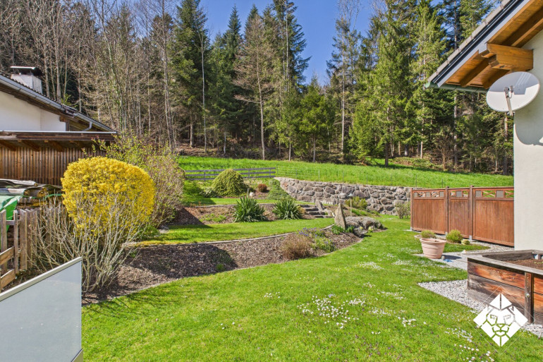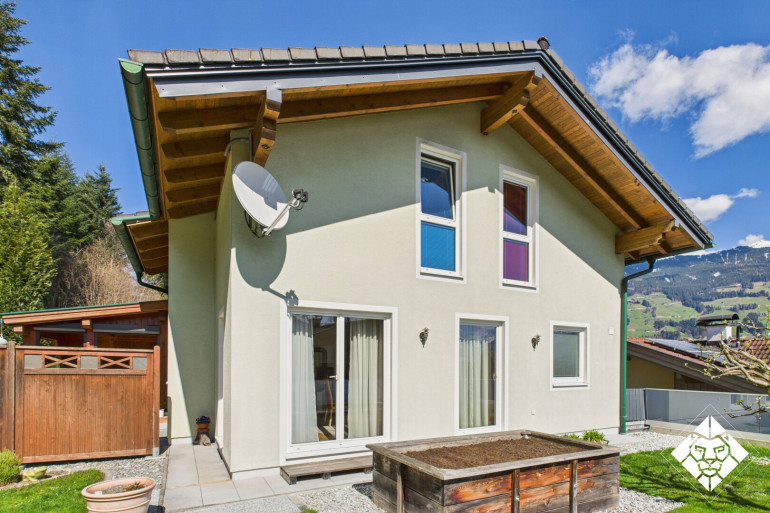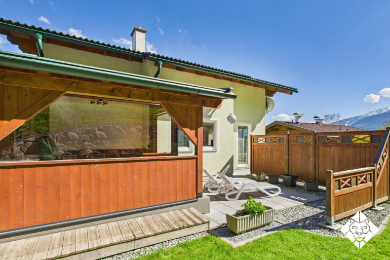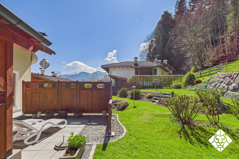 Das Highlight: Der liebevoll angelegte Garten mit windgeschützter Laube und Whirlpool – perfekt für laue Sommerabende mit Blick in die Zillertaler Alpen.