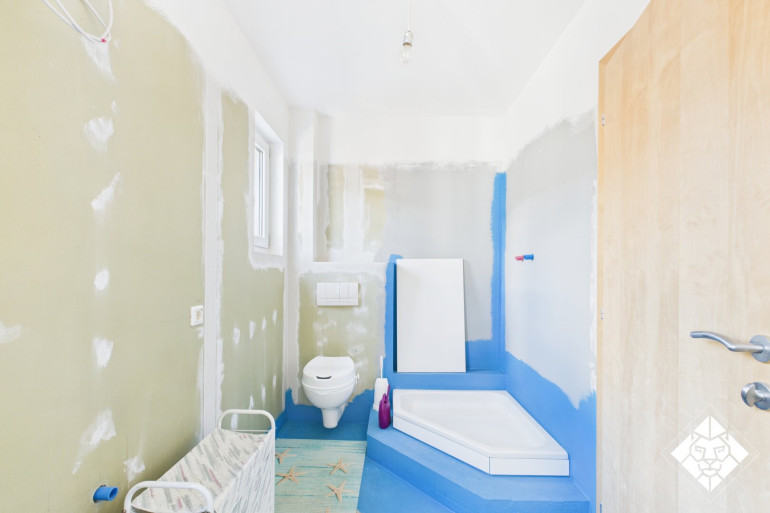 Außerdem im OG: das Schlafzimmer mit eigenem Ankleidezimmer sowie ein Badezimmer, das noch nicht fertiggestellt ist – hier können Sie Ihre Wünsche verwirklichen!