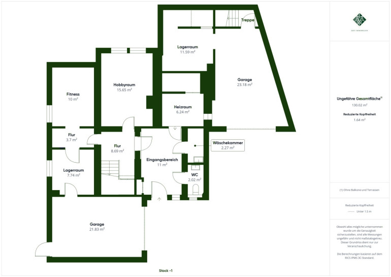 Neben einem Abstellraum (direkt von der Garage aus zugänglich) finden sich hier ein Fitnessraum, ein vielseitiger Hobbyraum, eine Waschküche, ein separates WC sowie der Technikraum.