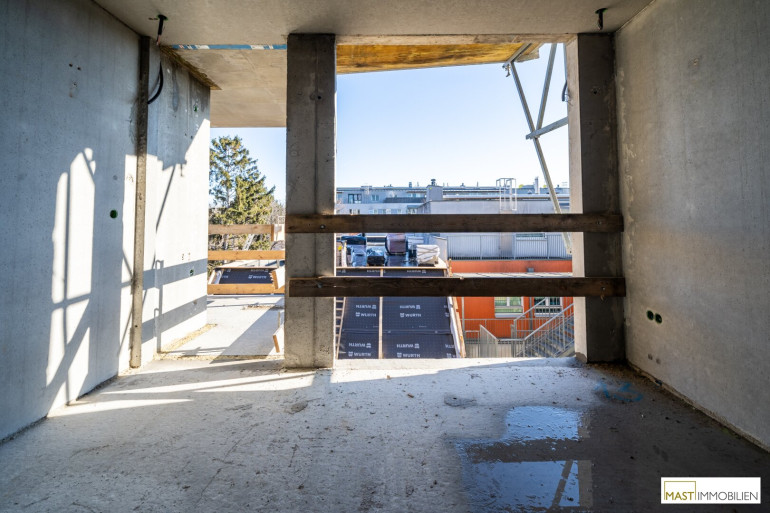 Die Wohnung befindet sich im 3. Liftstock und verfügt über 53,15 m² Wohnfläche + zwei Balkone mit insgesamt 14,60 m².