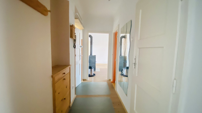 Geheizt wird die Wohnung mit Elektroheizkörpern und einem Schwedenofen.