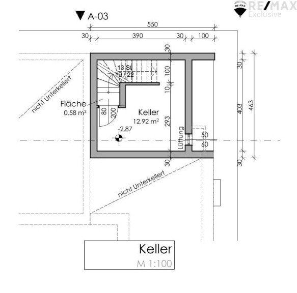 • Kellerraum (ca. 13,50 m²) mit Wänden aus Dichtbeton