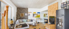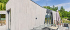 Wohn-, Ess- und Küchenbereich mit großflächigen Fensterfronten und Talblick