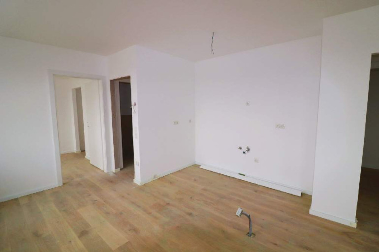 Böden: Hochwertiger Echtholzparkett in Wohnräumen, Feinsteinzeugfliesen in Bad, WC und Vorraum