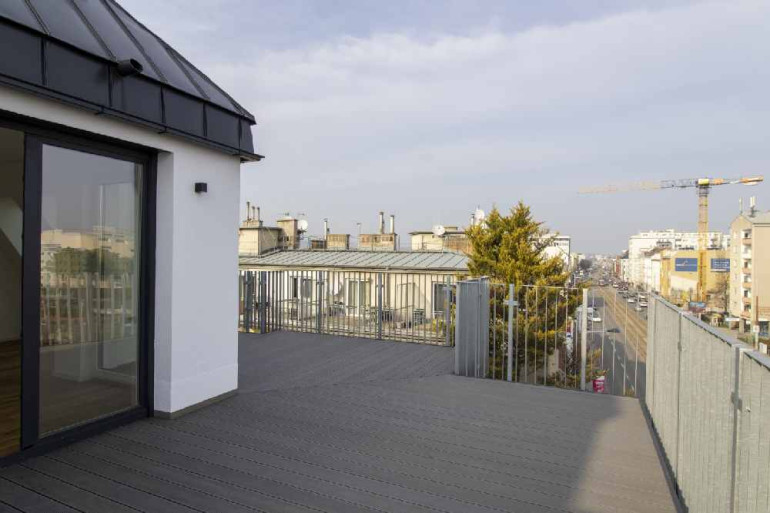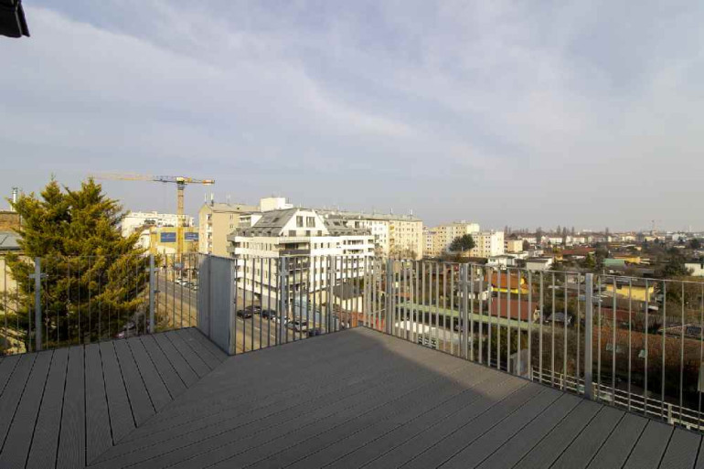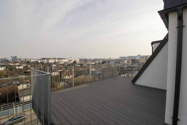 Je nach Wohnung stehen Balkone und/oder Terrassen mit Holzrosten und blickdichten Trennwänden zur Verfügung. Die Außenanlagen sind begrünt und mit einer ansprechenden Wegeführung sowie Beleuchtung ausgestattet.